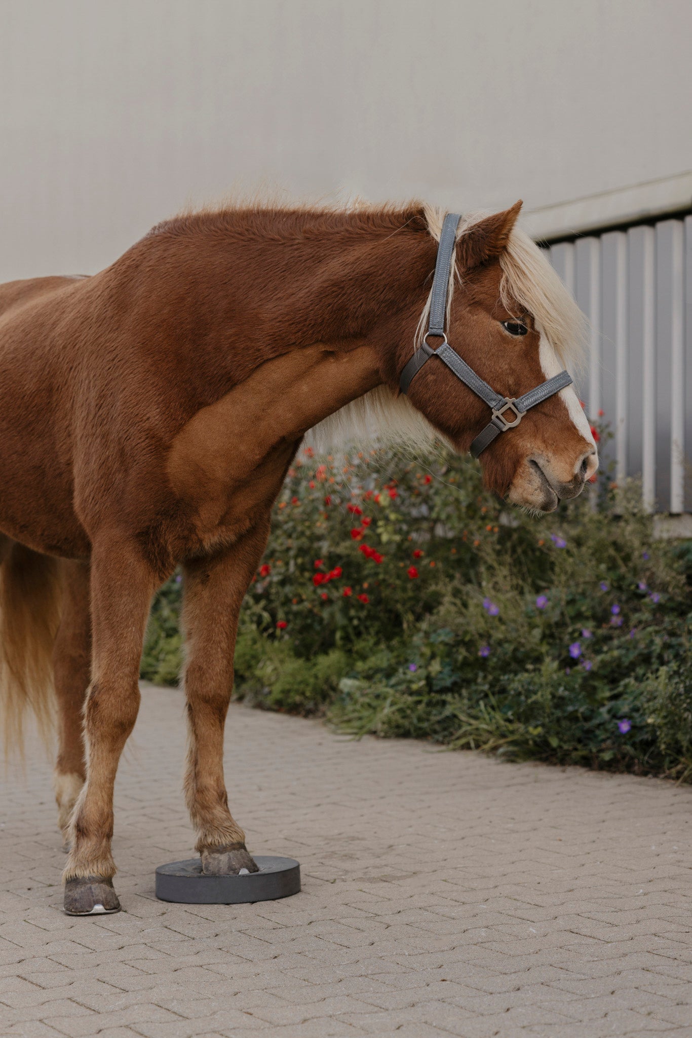 You should start with just one pad. Many horses usually find it easiest to start with the front, left hoof. Place the hoof carefully on the middle of the pad and give your horse time to put the hoof down and put weight on it. Then all you have to do is let your horse stay like that - this can be just a few minutes at first. You may notice your horse rocking slightly, twitching muscles and chewing.