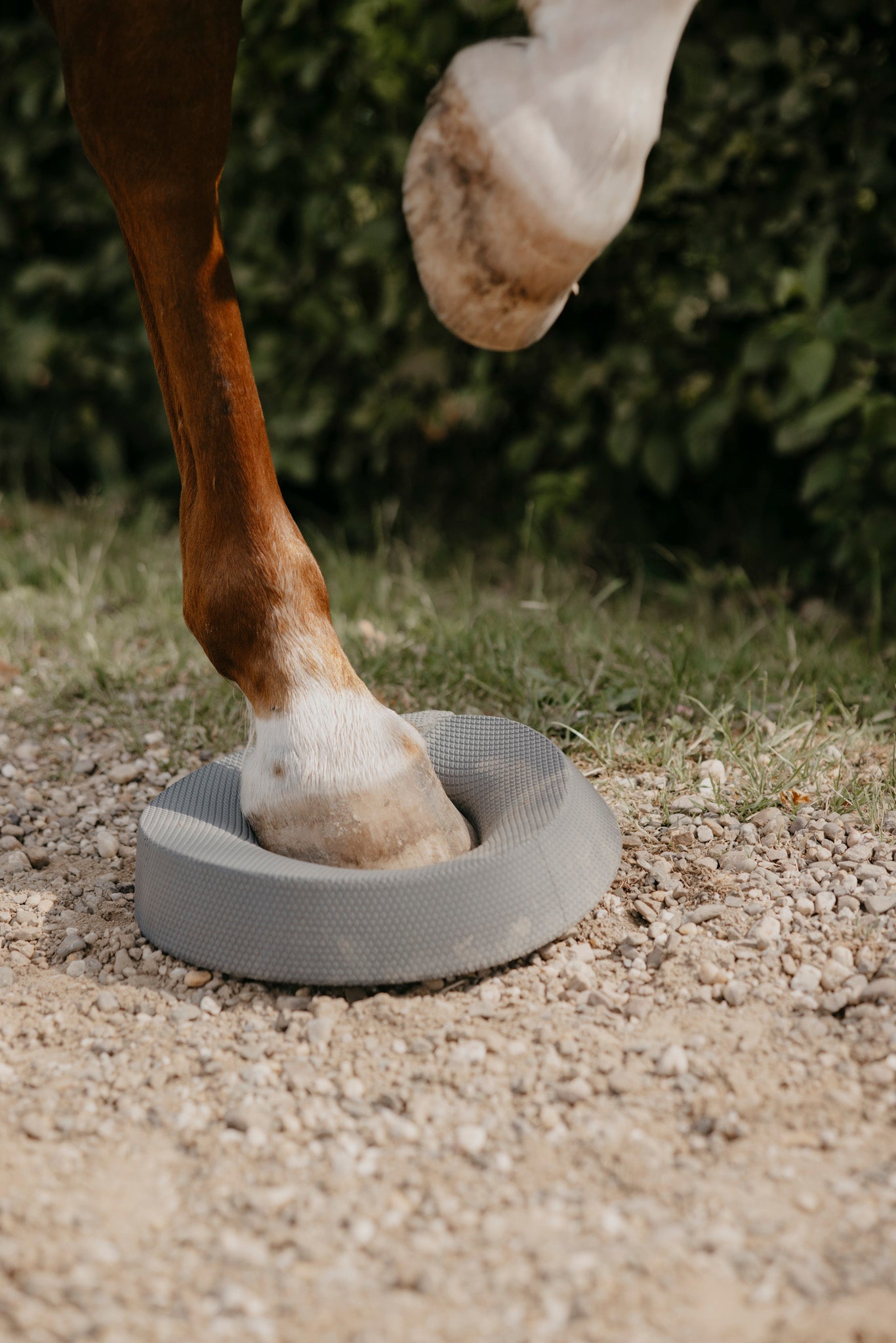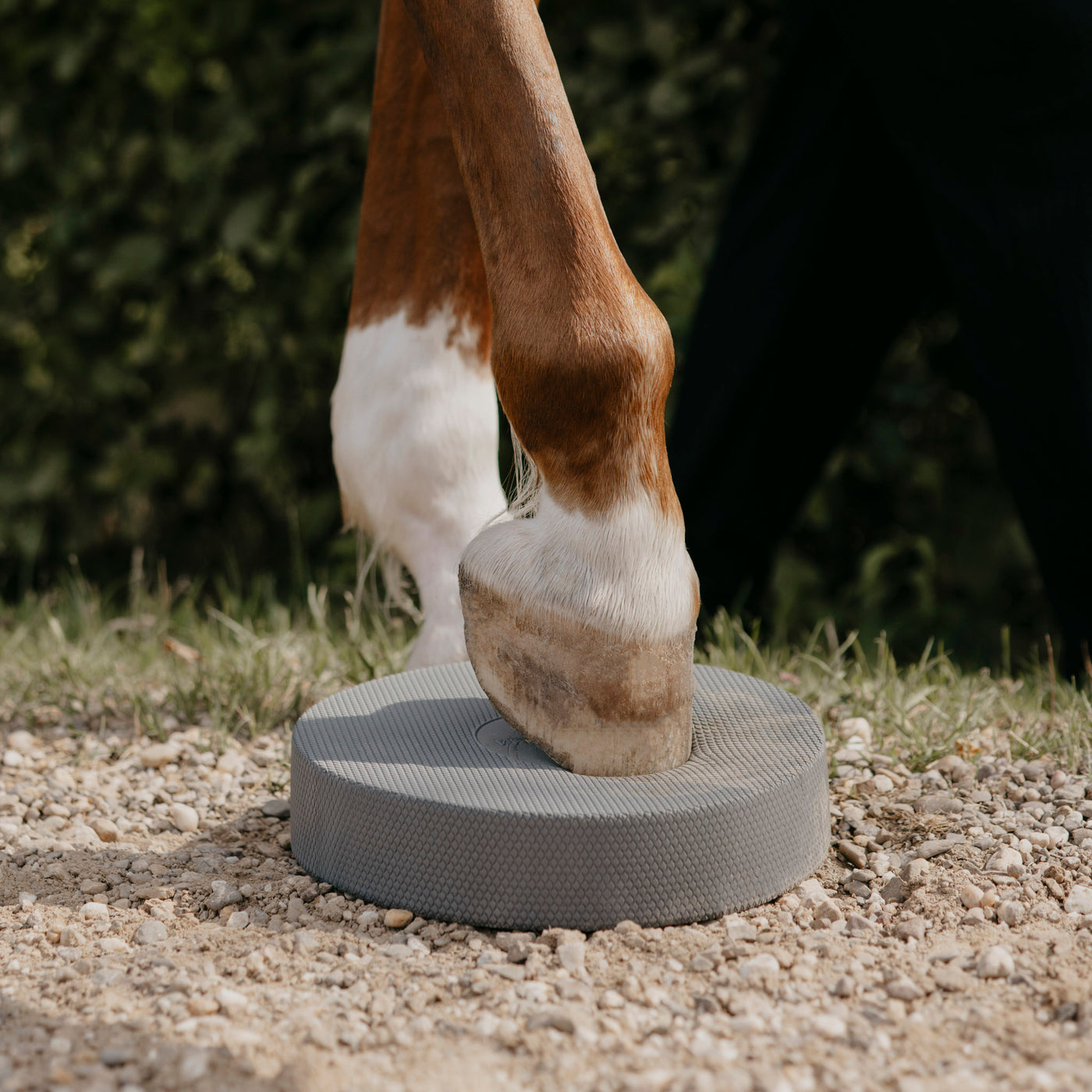 Die Hufe deines Pferdes sind aber eher rund, also ist die runde Form unseres Pads absolut entscheidend. Sie ermöglicht eine gleichmäßige Druckverteilung und erleichtert euch die Positionierung der Hufe - das ist ergonomischer & komfortabler!