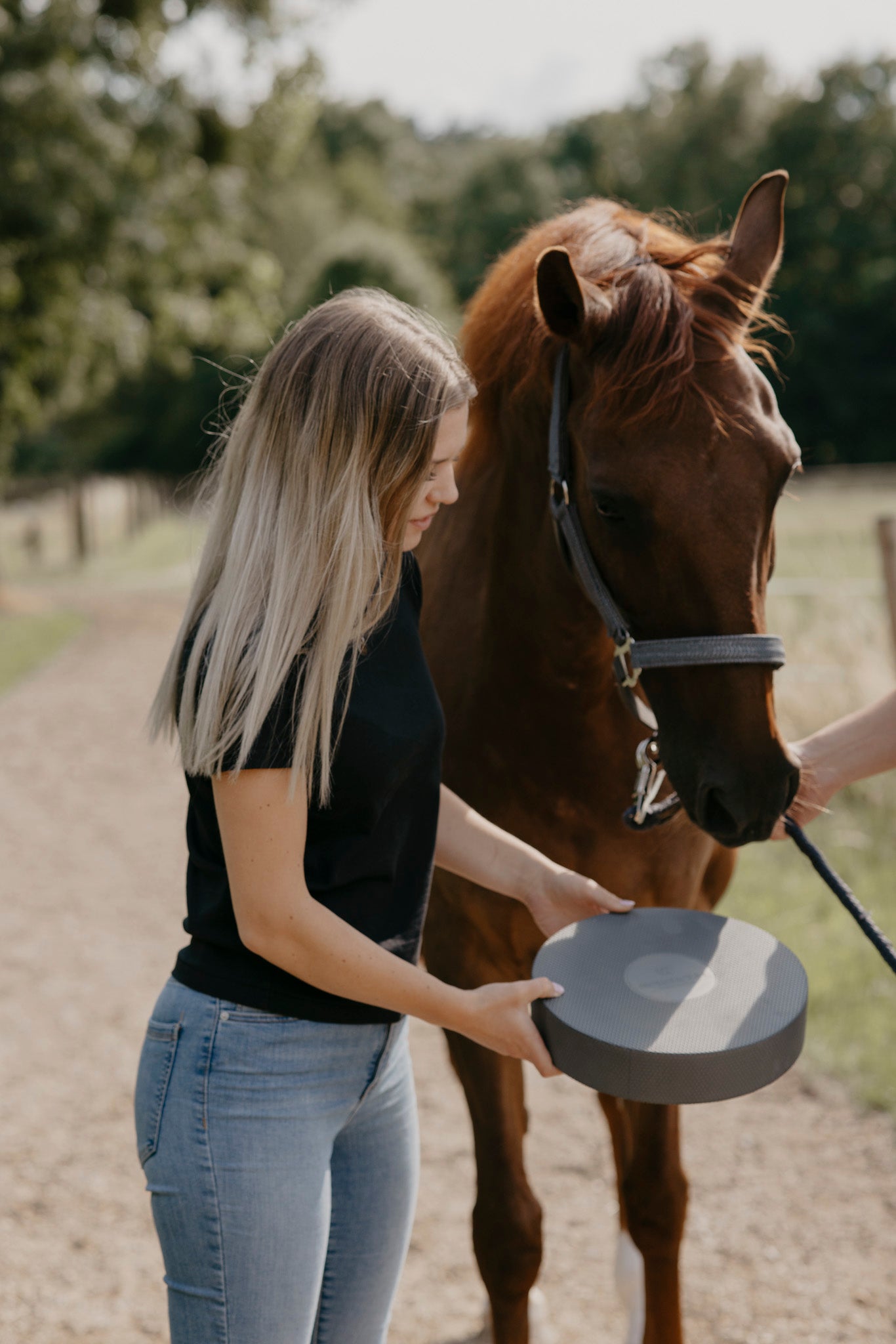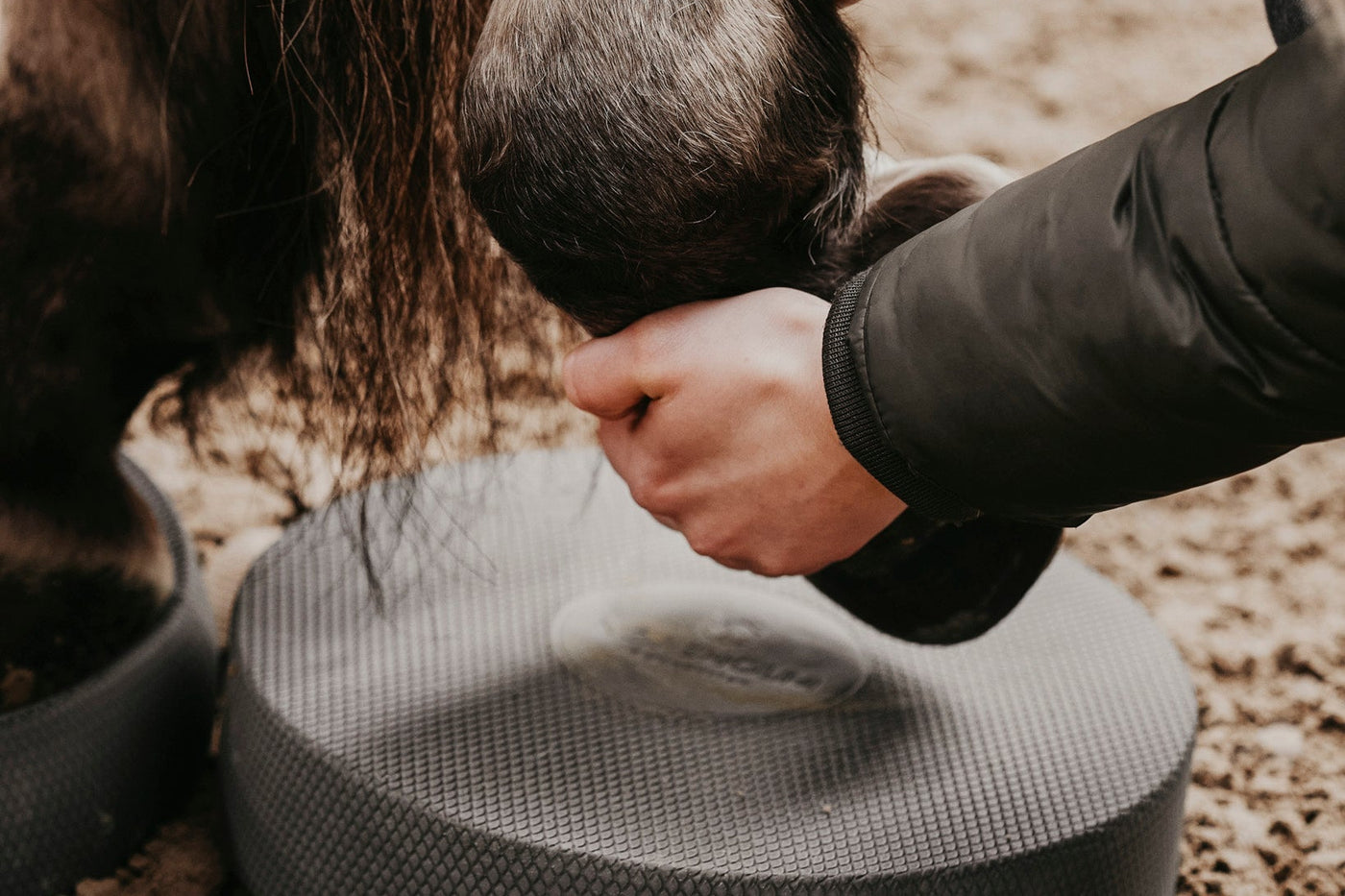In der Entwicklungsphase haben wir viele Farben ausprobiert. Bei unserem neutralen Grau stellten wir fest, dass die Akzeptanz des Balance Pads beim Pferd sehr hoch war.